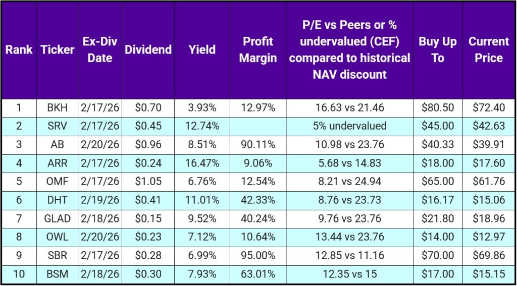 ✅ We currently hold: BKH, SRV, AB, and BSM.