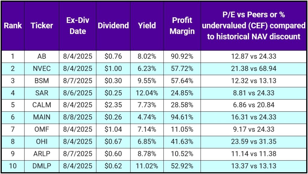 • AB & OMF offer more appreciation upside and almost double the yield.