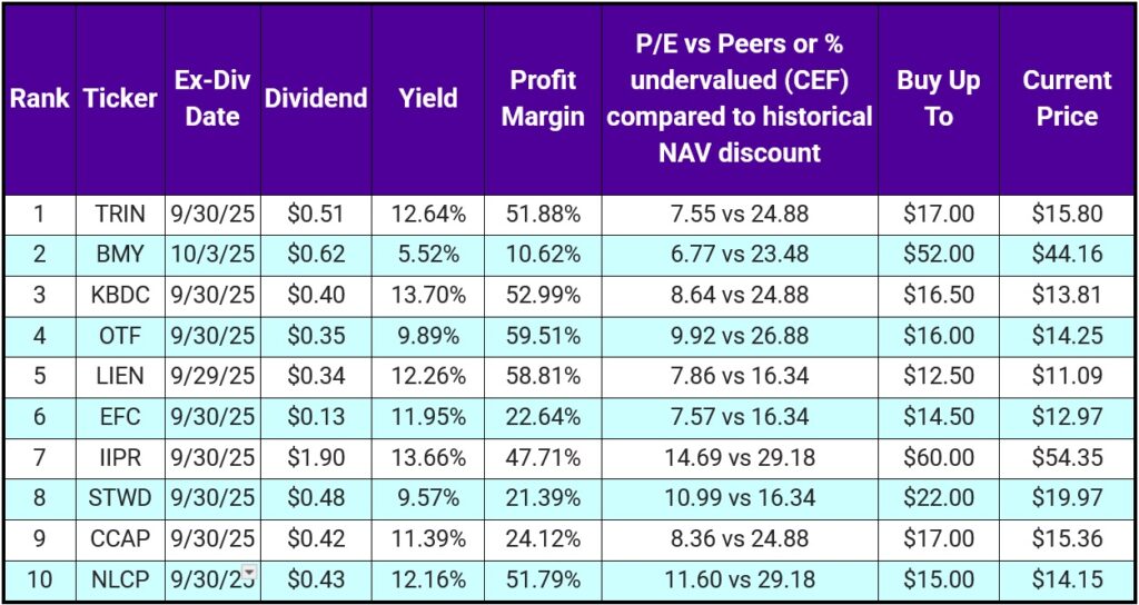 JRS (CEF): Yields 8.3%, ~10% undervalued, holds a fat basket of REITs. Just went ex-div 09/15, so we’ve got up to three months to snag it at the right price.